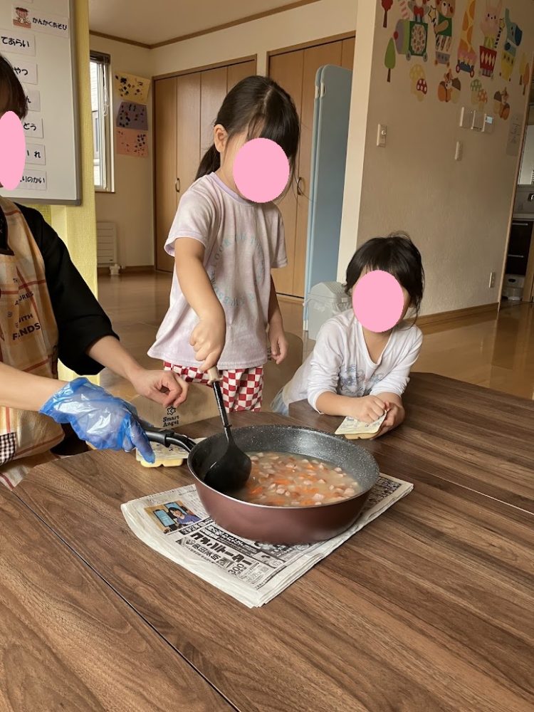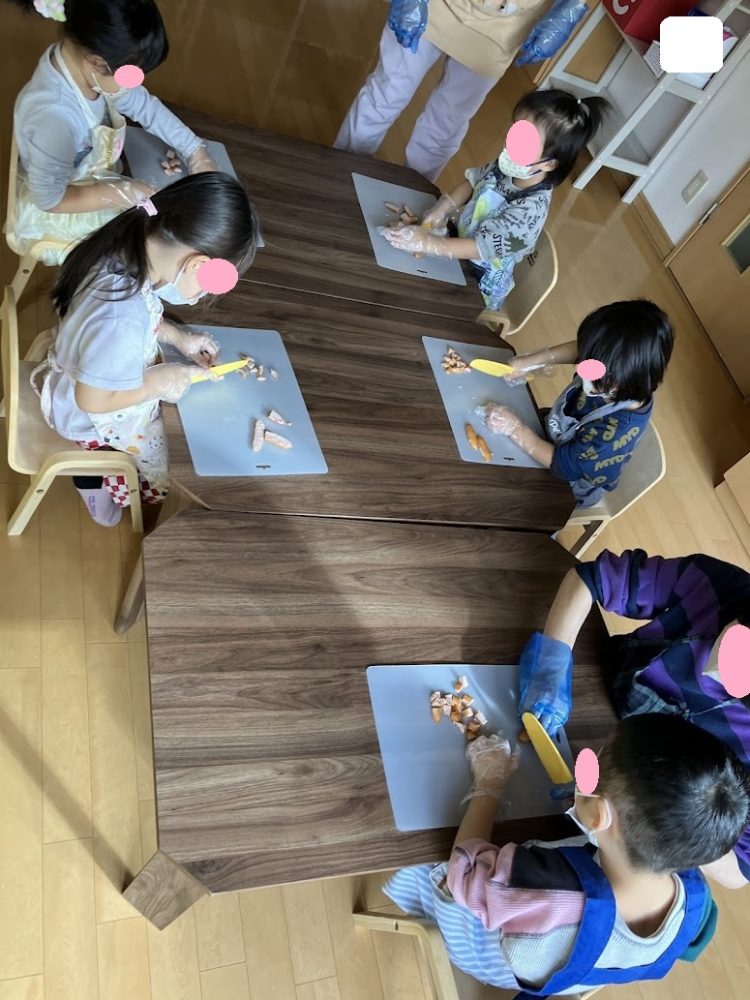 包丁の使い方が上手になってきています。お子さん達のやる気を見守り、程よく職員がサポート![]()