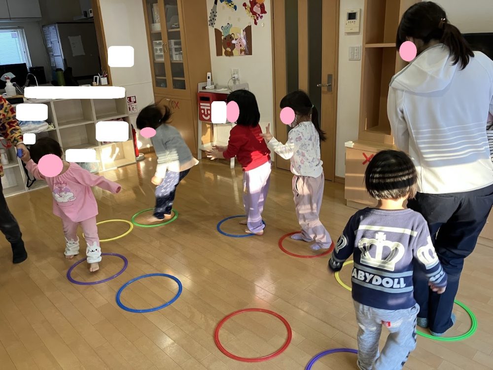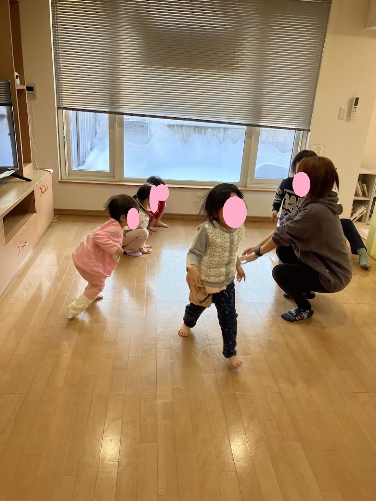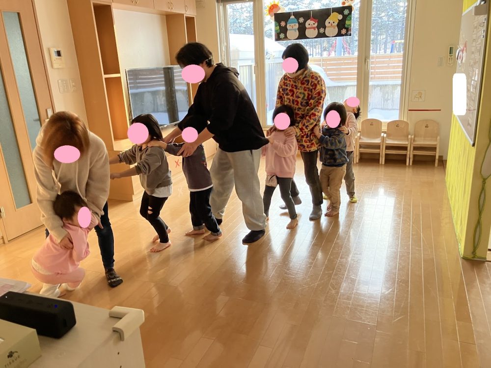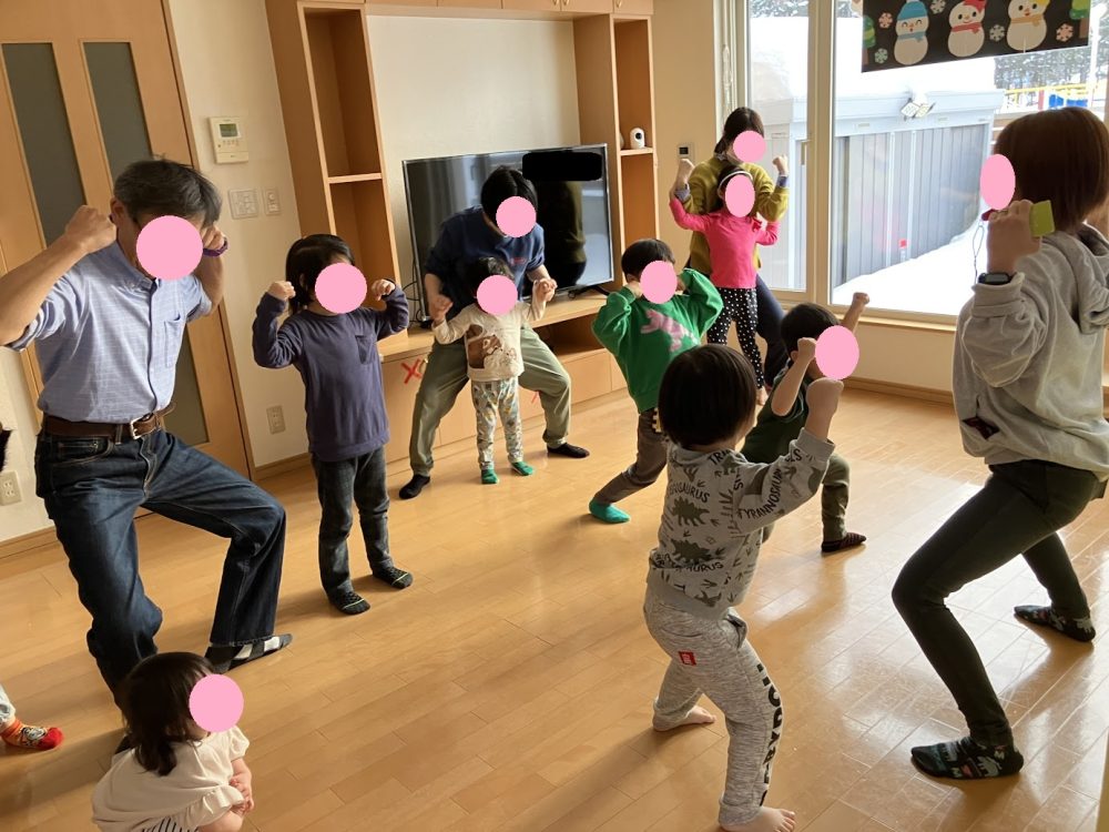 職員の動きをまねっこするだけなのですが、へんてこなポーズもあったりで皆で大盛り上がりでした![]()