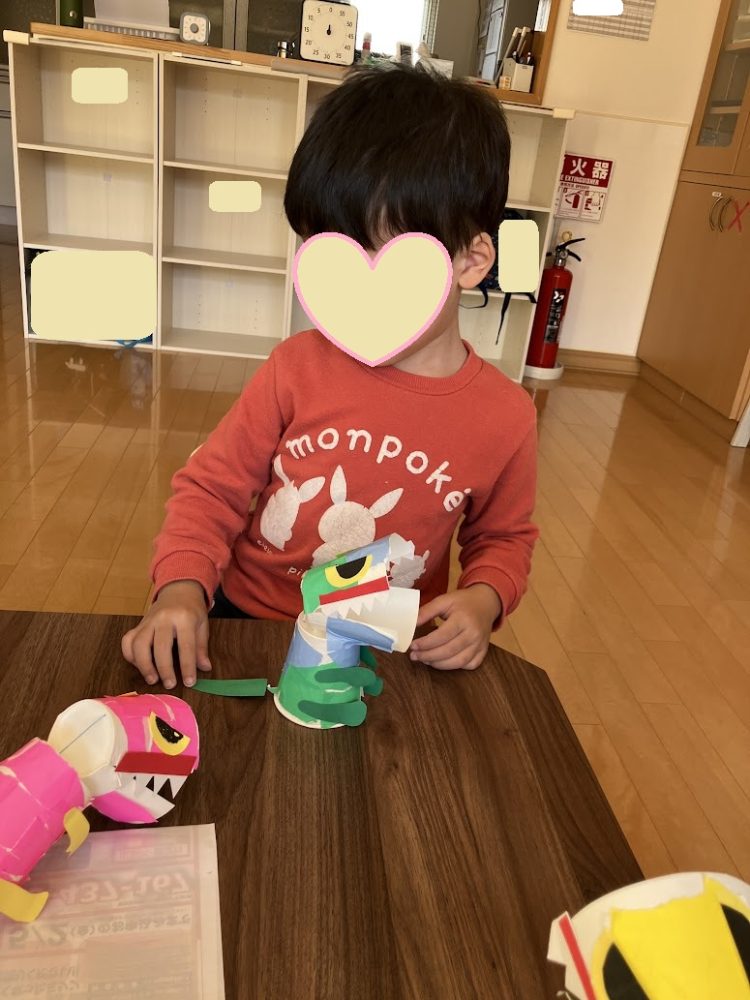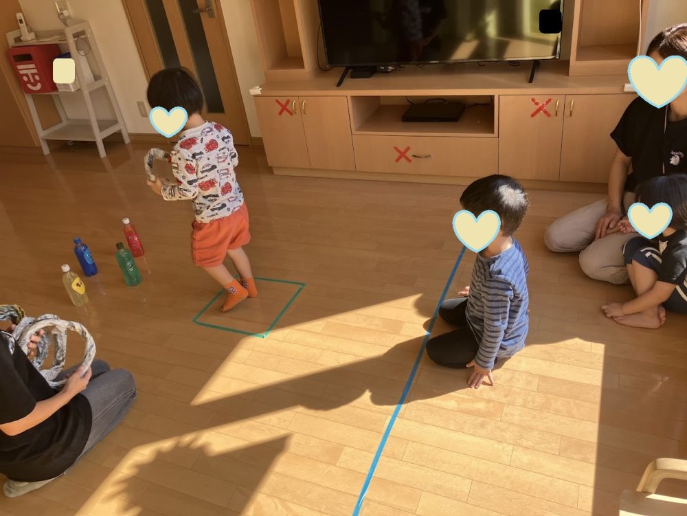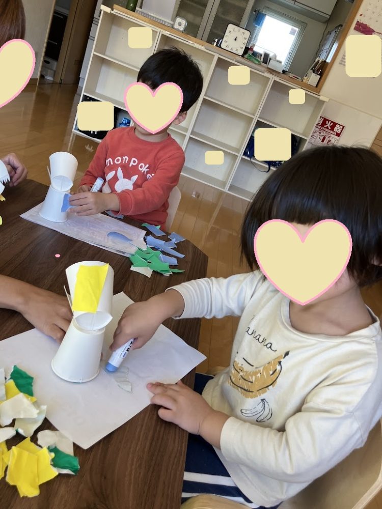 みんなでペットボトルに顔をつけたり、新聞紙で輪っかを作って遊びました✨