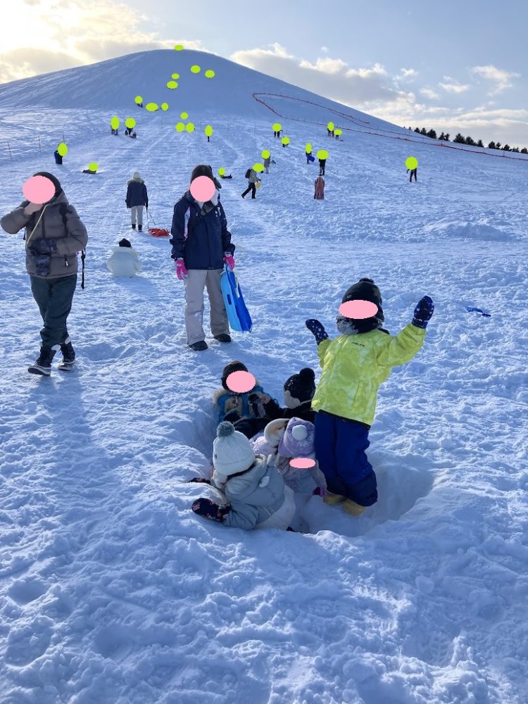人にぶつからないように登ったり、滑ったり。そり滑りが怖い子はちょっとずつ、ちょっとずつ![]()