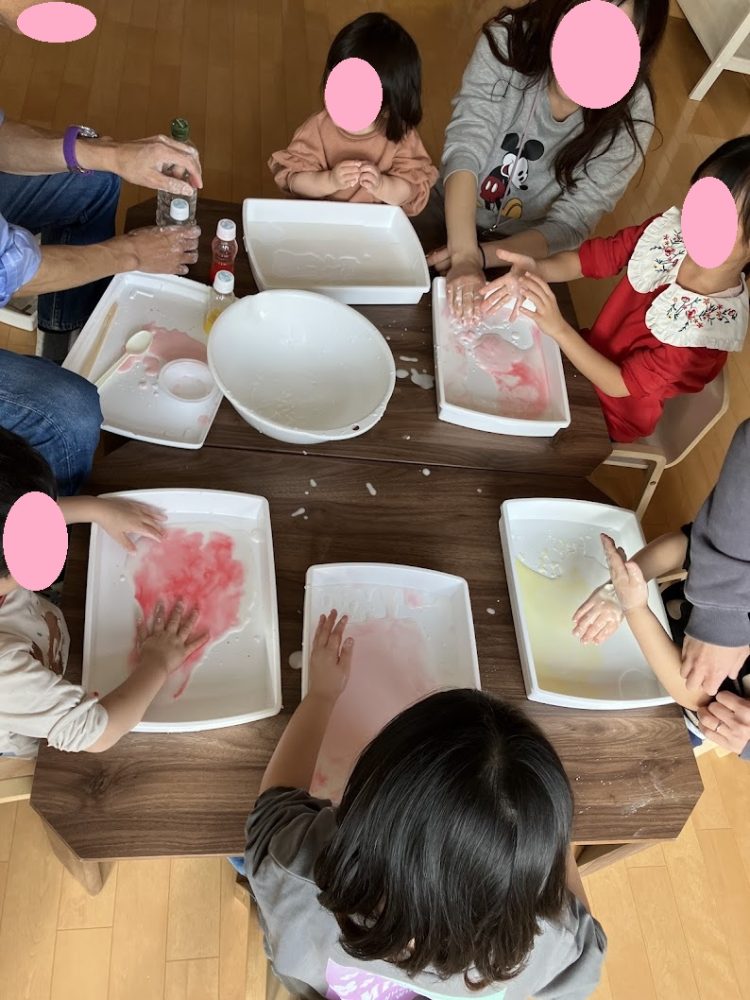 別の日には片栗粉スライム作り![]()