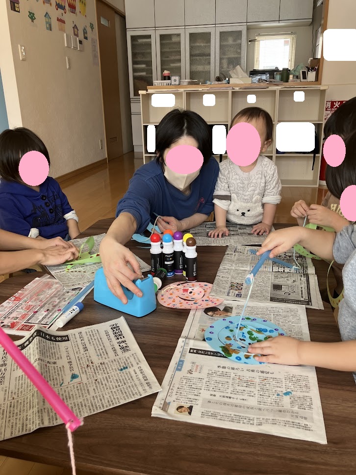ドットマーカーペンに興味深々の子供たちでした![]()