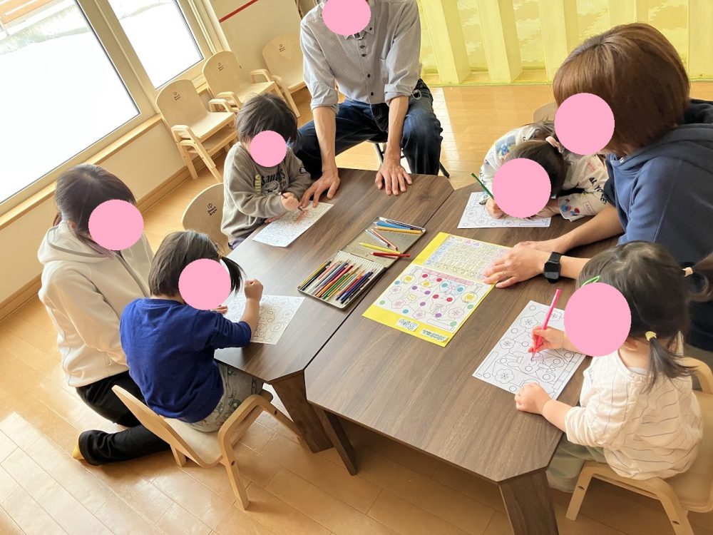 「お休みの日は赤なんだねえ」「ぼくは好きな色にしたい」などお話しながら楽しそうに進めていました![]()
